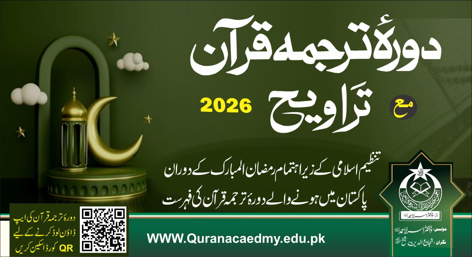 قرآن اکیڈمی اور اسکے زیر انتظام ہونے والے دورہ ترجمہ قرآن اور خطاب جمعہ اور متفرق ہفتہ وار دروس کو براہ راست نشر کرنے کا اہتمام کیا جاتا ہے جن کی ریکارڈنگ بھی پروگرام کے بعد سنىے / دیکھنے یا ڈاون لوڈ کرنے کے لیے فراہم کر دی جاتی ہے۔